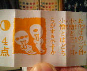 駄菓子屋で売られてる占いのような点取りゲームの様な、